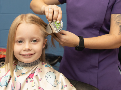 We offer a range of fun, safe, and professional services for children, including haircuts, styling, braiding, manicures, lice treatment, and ear piercing.